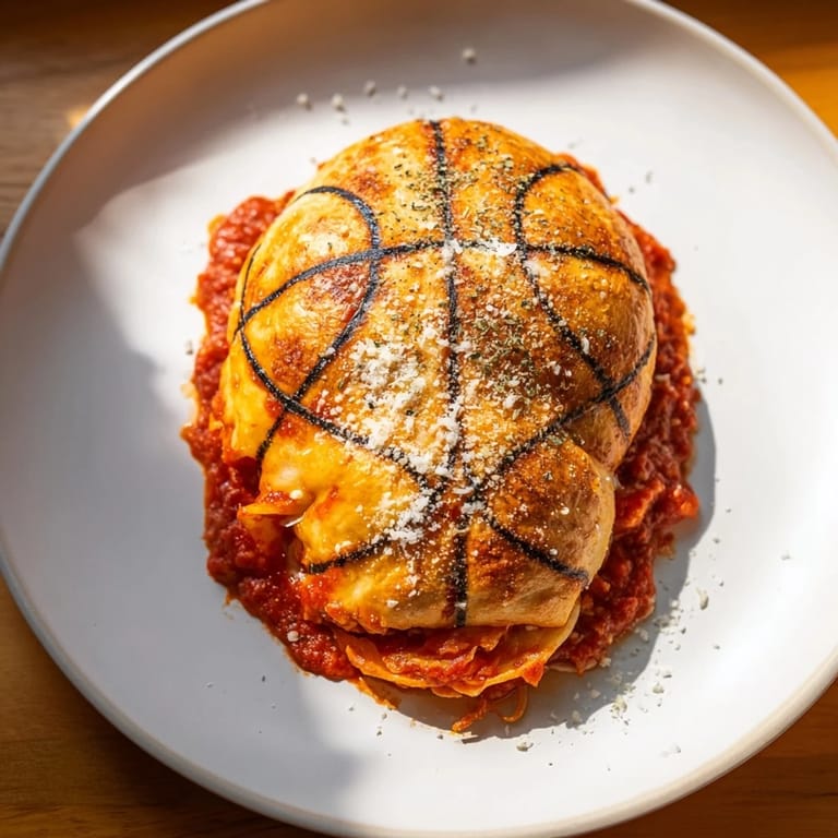 - Topping: 1 large egg, beaten, 2 tablespoons grated Parmesan cheese, 1 teaspoon dried oregano, Black food coloring or black olives, for basketball lines