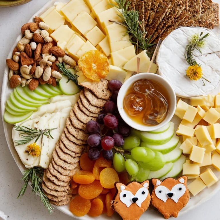 This grazing board encourages creativity and sharing, making it ideal for bringing people together around a beautiful, tasty spread. The inclusion of fresh herbs and edible flowers enhances the woodland charm and aroma, while animal-shaped cookies or chocolates add a delightful surprise that children and adults alike will enjoy.