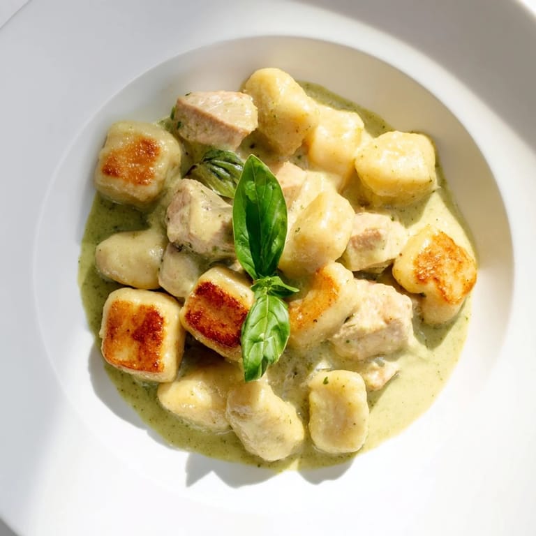 Save The first time I made this dish, I was rushing to get dinner on the table before a movie night with friends. I hadnt planned anything special, just a package of gnocchi sitting in the pantry and some chicken that needed to be used. When that creamy pesto sauce came together, coating those crispy little potato pillows, everyone went quiet. The best part is it comes together in about 35 minutes but tastes like it took all afternoon.