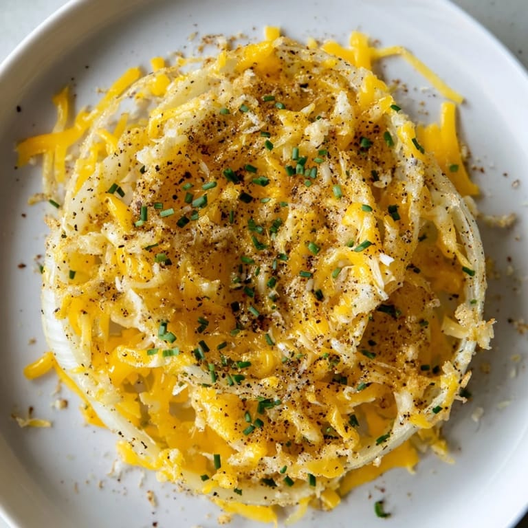 Save I discovered crispy onion cheese chips by accident on a Tuesday evening when my air fryer was gleaming and empty, and I had a pile of onions that needed rescuing from the vegetable drawer. Something about melting cheese over paper-thin onion rings sparked pure curiosity—what if they got as crunchy as potato chips but tasted like caramelized sweetness with that sharp cheddar bite? Twenty minutes later, I was pulling golden, impossibly crispy chips from the basket, wondering why I'd waited so long to try this.