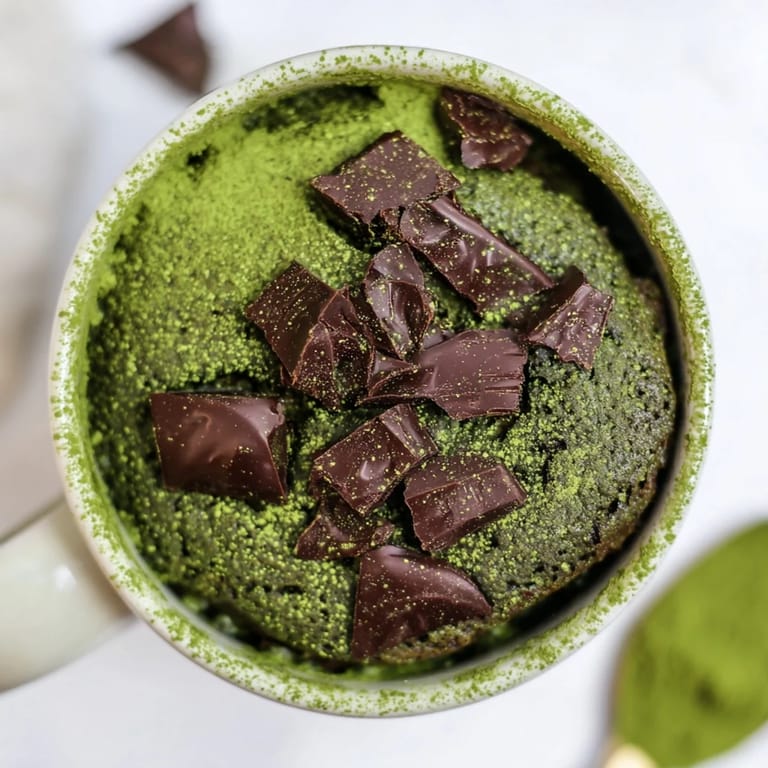 Save A rich, fudgy mug cake infused with earthy matcha and cool peppermint, ready in minutes for a delightful single-serve treat.