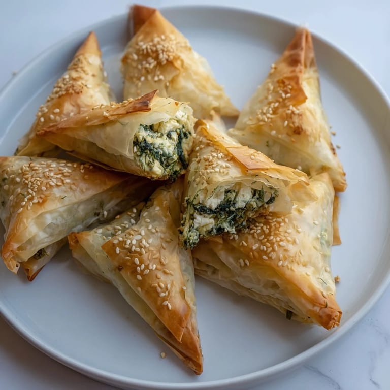For enhanced aroma, add a pinch of lemon zest to the filling mixture before assembling. This subtle citrus note complements the herbs beautifully. When working with phyllo, keep sheets covered with a damp towel to prevent drying out. Folding the triangles carefully ensures a neat, uniform shape and an even bake.